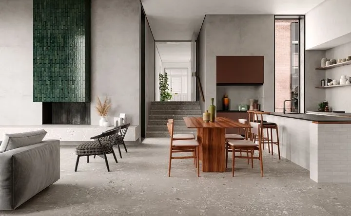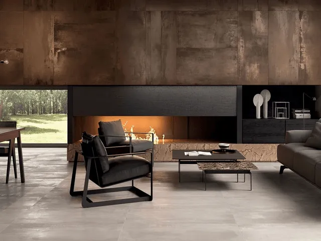 Effetti Legno, marmo, metallo, pietra, cemento/resina e grandi lastre arricchiscono la collezione disponibile in vari formati.