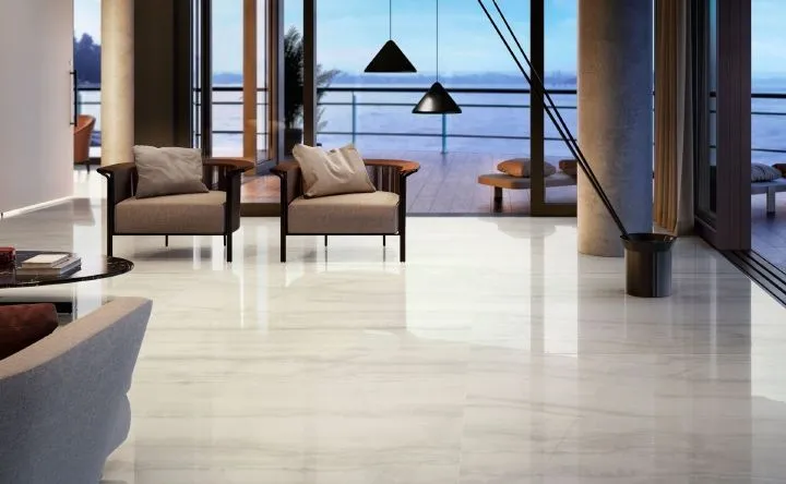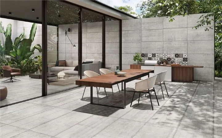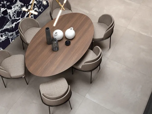 Una vasta gamma di pavimenti dall’effetto legno, marmo, pietra ed effetto cemento/resina fino alla serie OUTFIT 2.0 per pavimenti da esterno da 20 mm di spessore.