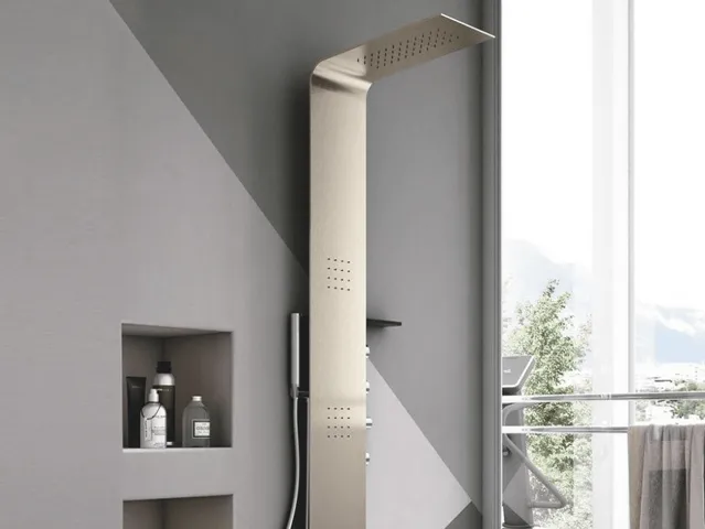 Hafro, azienda del Gruppo Geromin, produce sistemi doccia completi, colonne doccia composte da soffioni, doccine, getti d’acqua o jets nebulizzati, pareti doccia dalle finiture in acciaio o perfino alla fibra di carbonio. Ha in gamma Colonne dalle piccole dimensioni a quelle più accessoriate incluse di mensole portaoggetti o quelle da installare ad angolo porta.